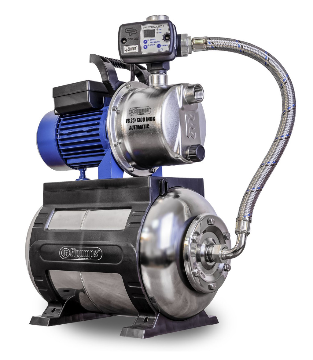 Az Elpumps VB 25/1300 INOX Automatic házi vízellátó egy komplett vízellátó rendszer, mely lehetővé teszi a tiszta víz szállítását víztározókból vagy kutakból többek között otthoni vagy öntözőrendszerekben történő felhasználásra.