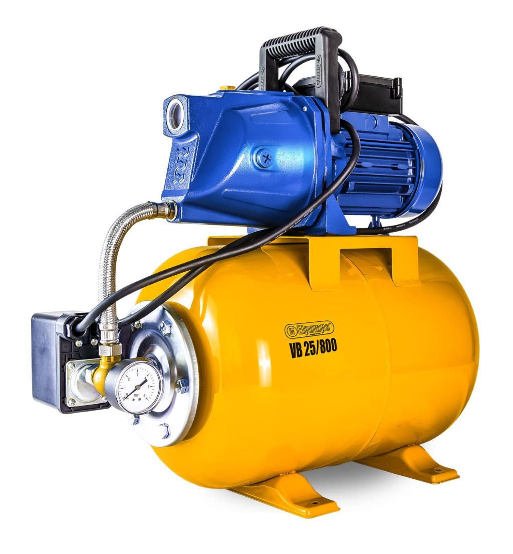 Az Elpumps VB 25/800 házi vízellátó egy komplett vízellátó rendszert kínál kompakt kivitelben, lehetővé téve tiszta víz szállítását víztározókból vagy kutakból többek között otthoni vagy öntözőrendszerekben történő felhasználásra.