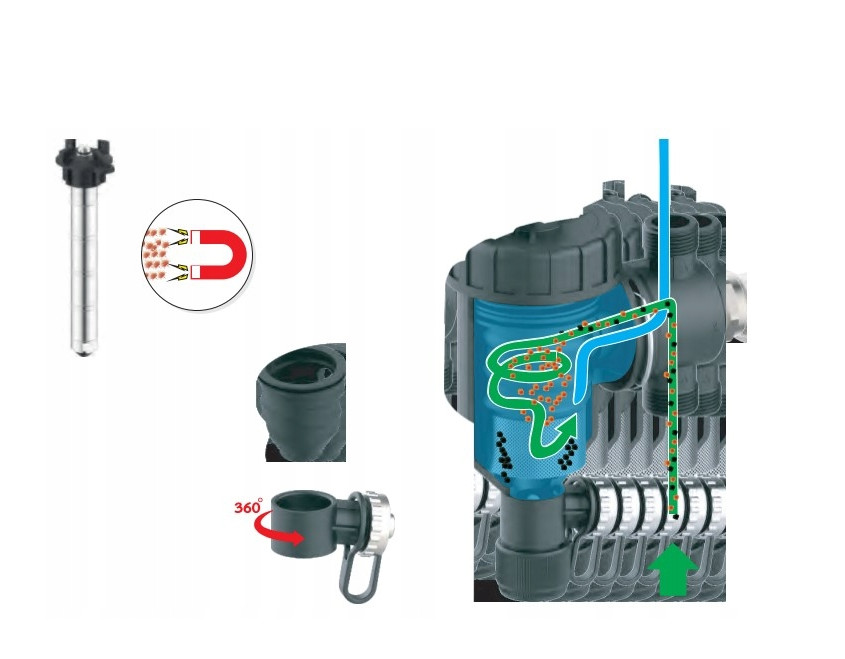 A mágneses szűrőket a rendszerben lévő folyadék által szállított finom vasrészecskék felfogására használják. Ez megakadályozza, hogy azok áramlás közben dörzsöljék a rendszer alkatrészeit, vagy felhalmozódjanak a mélyedésekben, elzárják a szelepeket, a működtetőket, vagy korlátozzák az áramlási átmérőt.