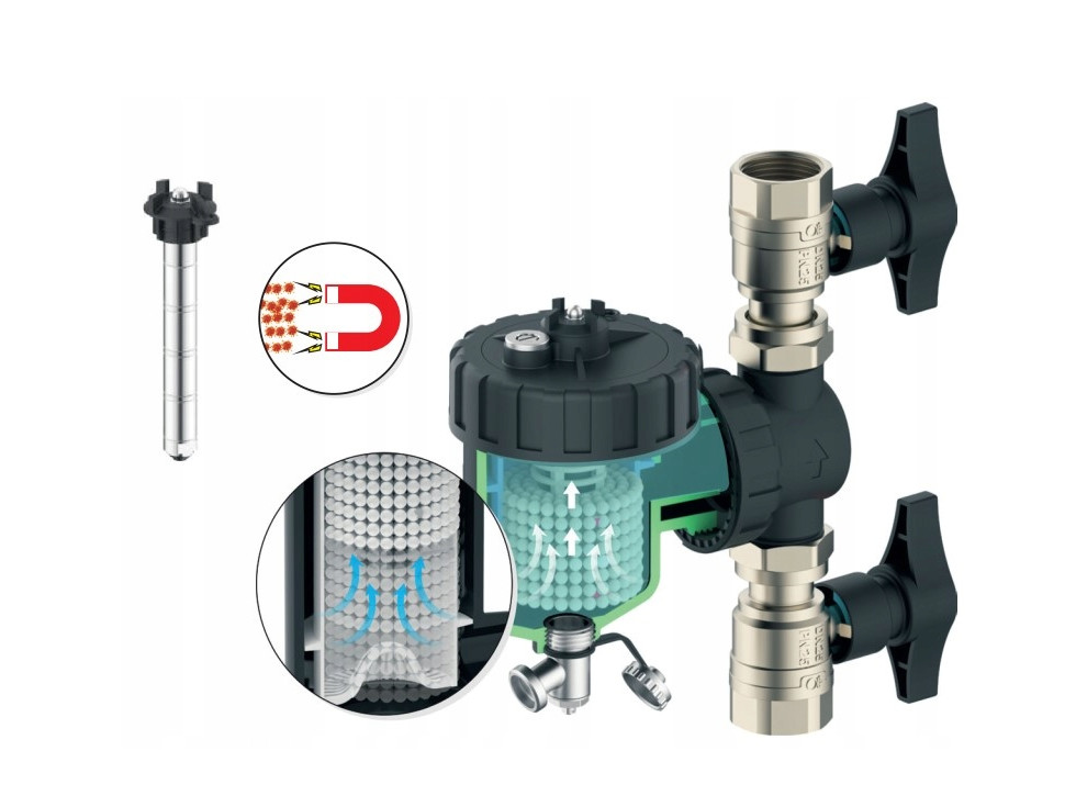A mágneses szűrőket a berendezésben lévő közeg által szállított finom vasrészecskék felfogására használják. Ennek köszönhetően áramlás közben nem dörzsölik a szerelvényelemeket, és nem gyűlnek össze a résekben és repedésekben, nem blokkolják a szelepeket, a működtetőket vagy szűkítik az áramlási átmérőt.