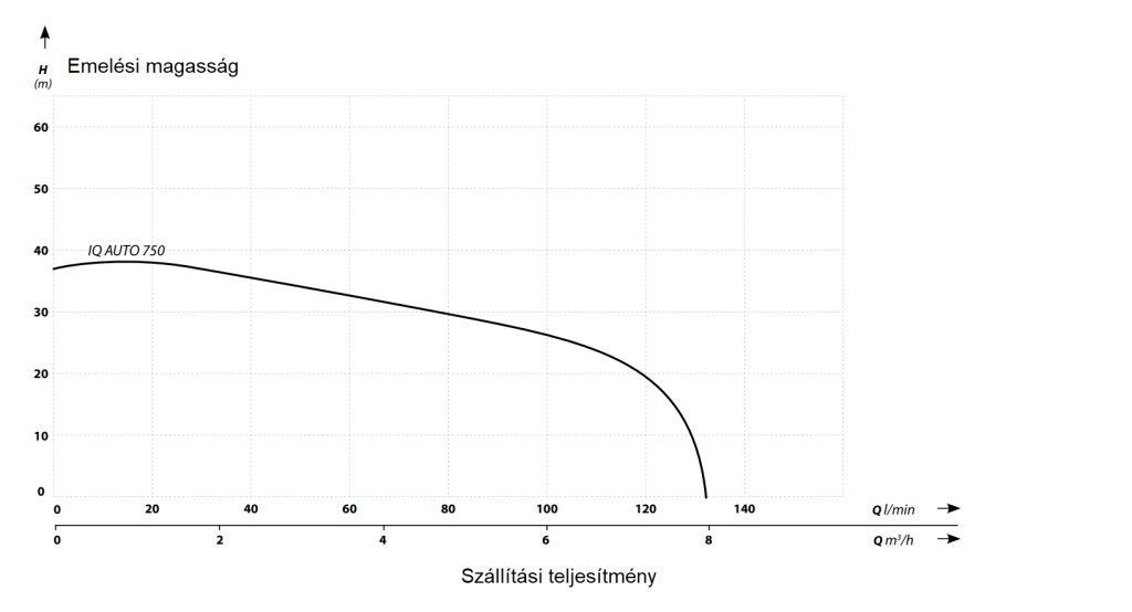 Kompakt, 750 W-os motorja ellenére az IQ-AUTO 750 szivattyú nagyon magas, akár 130 l/perc maximális áramlási sebességet ér el. Ezek a paraméterek tökéletesen alkalmasak egy nagy családi ház, egy nagy kert vagy több kereskedelmi helyiség öntözésére. Továbbá a készülék S1 osztályú – folyamatos üzemre alkalmas.