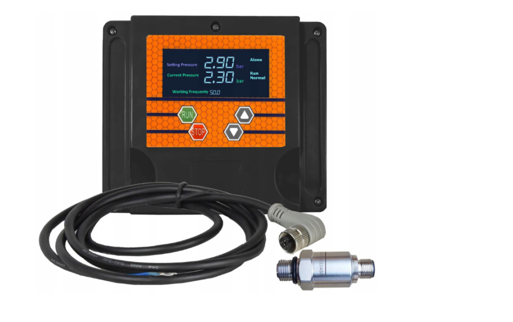Az IVR-10 T intelligens szivattyúvezérlő egy könnyen használható vezérlő és védőeszköz, amely közvetlenül csatlakoztatható búvárszivattyúkhoz, felszíni szivattyúkhoz és egyéb kútszivattyúkhoz. Állandó, előre beállított víznyomást tart fenn a szivattyúmotor fordulatszámának változtatásával. Valós idejű nyomáselemzés segítségével az inverter a szivattyú fordulatszámát az aktuális rendszerigényhez igazítja, a szivattyú max. motorteljesítményétől függően 400V 3-4KW-ig.