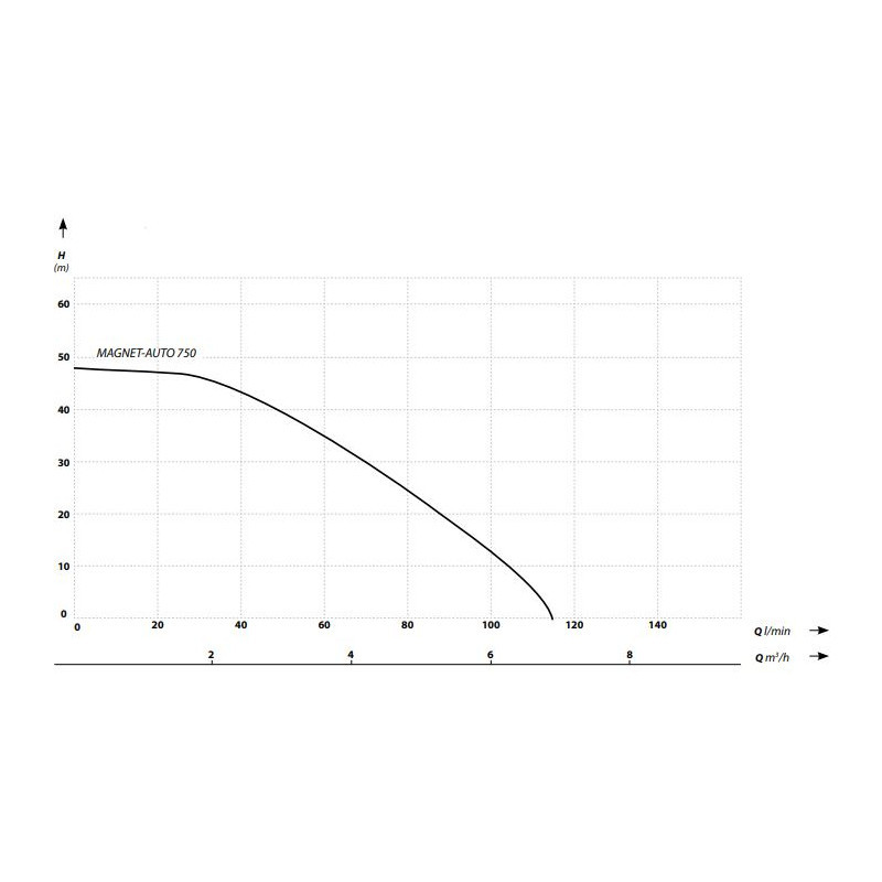 Kompakt, 750 W-os motorja ellenére a MAGNET AUTO 750 szivattyú nagyon magas, akár 117 l/perc maximális áramlási sebességet ér el, így tökéletesen kielégíti egy nagy családi ház (kerti öntözéssel) vagy több kereskedelmi létesítmény igényeit. Továbbá a készülék S1 osztályú, ami azt jelenti, hogy folyamatos üzemre alkalmas.
