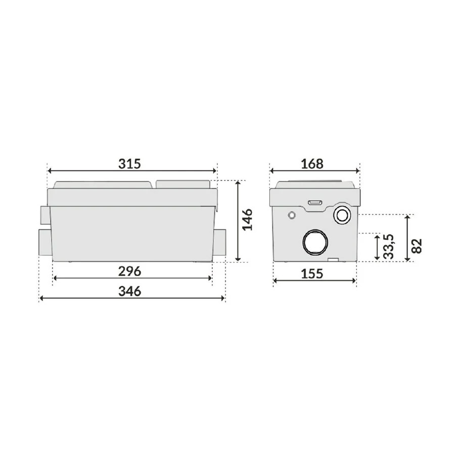 A SANIBO MINI egy fürdőszobákba és konyhákba tervezett szaniter szivattyú. Ez a szivattyúállomás a piacon elérhető egyik legfejlettebb és legmegbízhatóbb kialakítással büszkélkedhet. Továbbá, egy teljesen automatikus eszköz, amelyet fürdőszobákban való használatra terveztek, mosogatókból és zuhanyzókból, vagy mosógépekből és mosogatókból a konyhákban történő víz szivattyúzására. A szivattyú automatikusan bekapcsol, amikor a folyadékszint eléri az 55 mm-t, és kikapcsol, amikor 25 mm-re csökken.