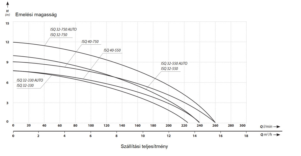 Szivattyú típusa: Merülőszivattyú (ISQ sorozat) tiszta és enyhén szennyezett vízhez. A karcsú AISI 304 rozsdamentes acél ház (a járókerékkel együtt) megkönnyíti a kisebb kutakba való beépítést. A motor beépített hővédelemmel rendelkezik , és a házon átáramló víz magától hűti . Megengedett hézag a járókerék alatt: 10 mm (a 32-ISQ sorozat esetében). Korrózióálló.