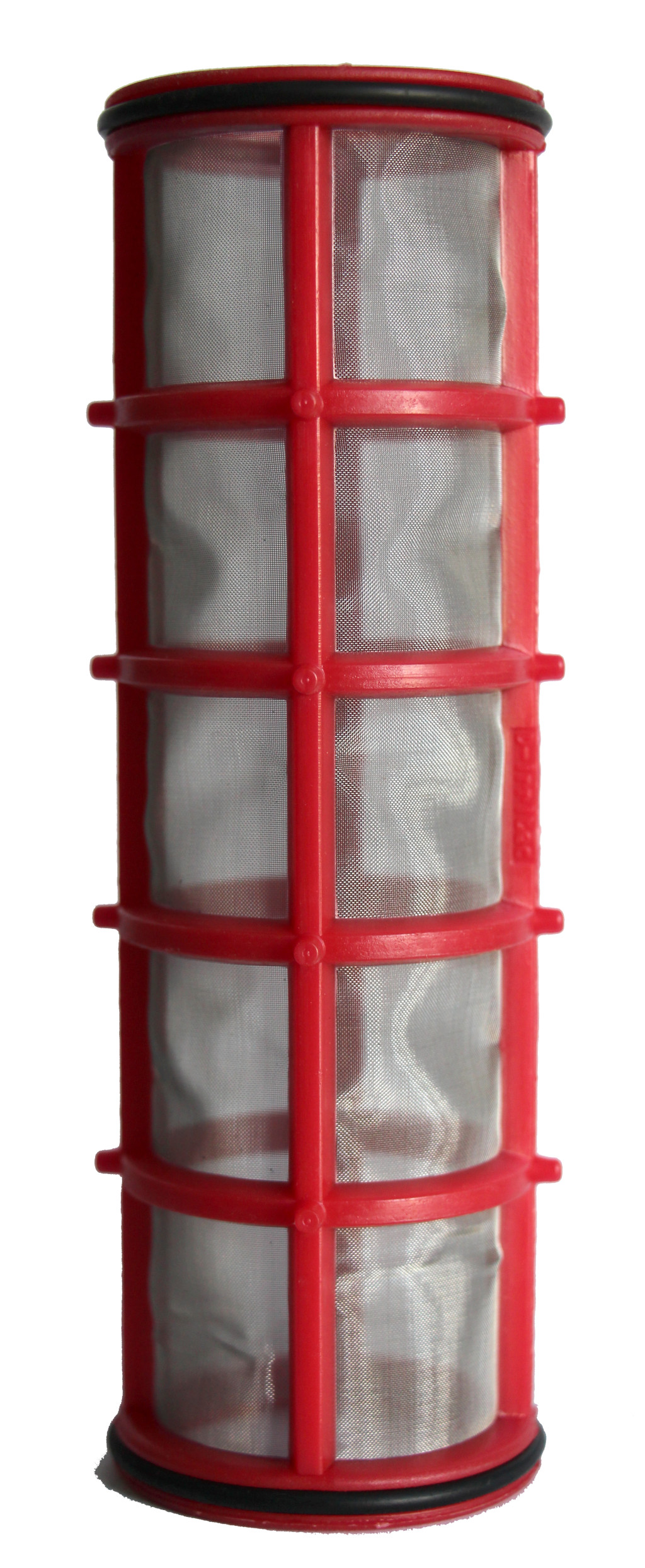 Anyagok és kivitel: a test és a borítás polipropilénből, a szűrőbetét pedig rozsdamentes acél hálóból készül.