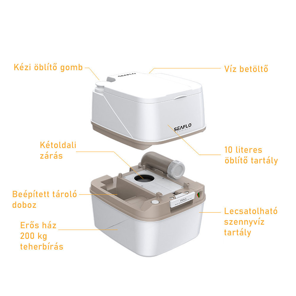 Kompakt kialakításának köszönhetően kényelmesen elhelyezhető és könnyen szállítható, illetve szagmentesen üríthető.