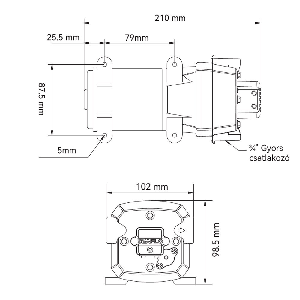 Önfelszívó nyomáskapcsolós membránszivattyú 12,5 l/perc 12V SEAFLO 41 Short