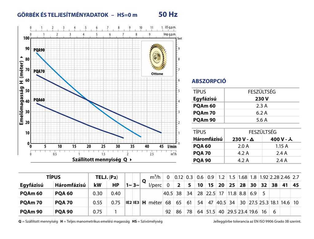 A PQA szivattyúkat tiszta víz, koptató részecskéket nem tartalmazó, a szivattyú alkatrészeire kémiailag semleges folyadékok szállítására ajánljuk. PPS anyagból rézötvözet járókerék fedéllel garantált védelem a rozsda megtelepedése és az oxidáció ellen; jellemzői alapján az iparban találják meg helyüket, például hűtőrendszerek, klimatizálás, vasalógépek stb. területén.